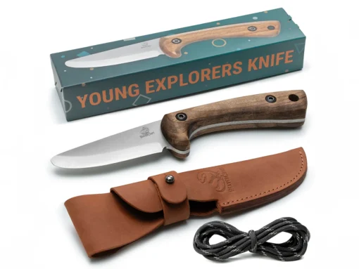 Чохол з коров’ячої шкіри має петлю для кріплення на ремінь з класичною застібкою. Він забезпечить безпечне і зручне зберігання цього ножа, завдяки чому ножик буде завжди доступний під час прогулянок. Крім того, в рукоятці є отвір для шнурка, що надає можливість для підвісити ніж за гачок або гілку. Це відмінний вибір для допитливих дітей і юних дослідників, який відкриває їм шлях у світ досліджень, навчання і пригод на свіжому повітрі.