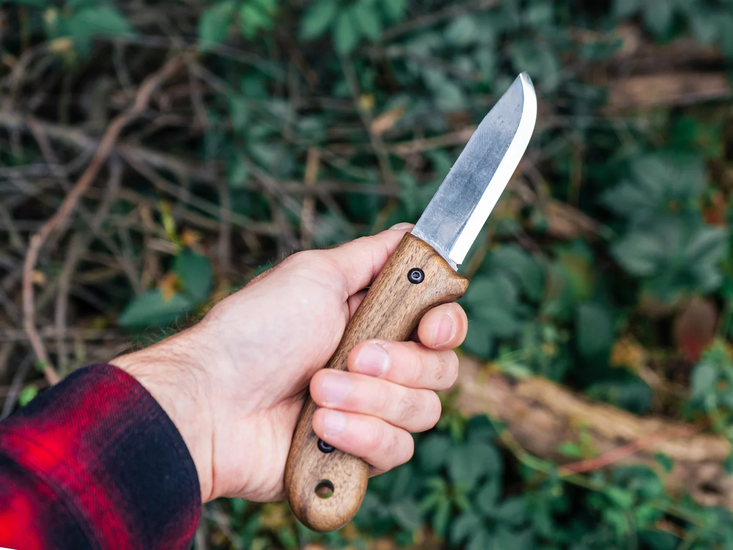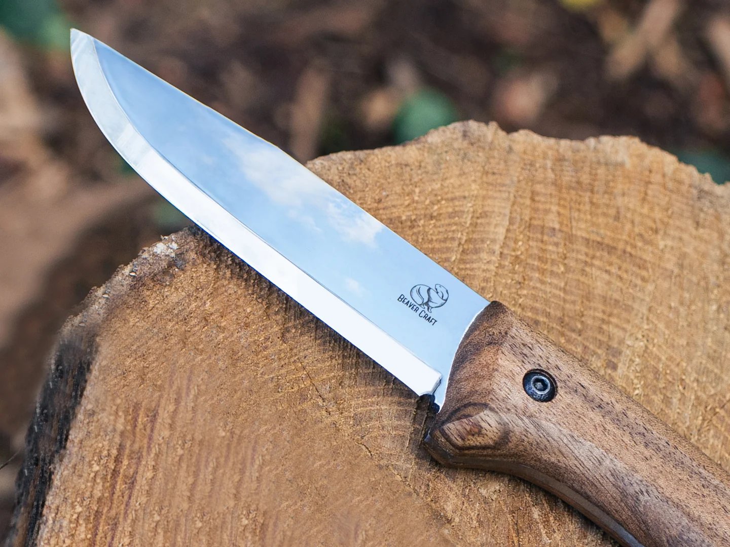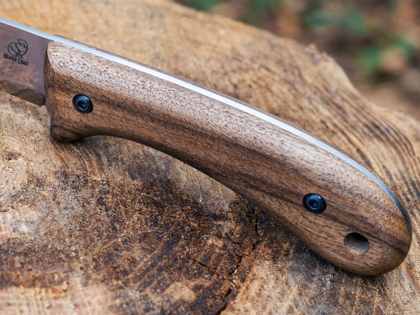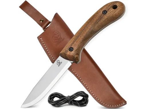Цей ніж для виживання в стилі бушкрафт із фіксованим лезом має правильну геометрію та ергономічний дизайн. Він зручний, функціональний та простий у використанні (рука не втомиться навіть після довгої роботи). Ніж має менше, ніж у попередника, але вражаюче лезо з вуглецевої сталі. Інструмент буде корисним в будь-якій області, яку ви можете придумати – як обробний ніж, кухонний ніж або ще щось, що вам потрібно у лісі. У нього ручка з горіхового дерева зі шкіряним шнурком, за який приємно та зручно тримати.