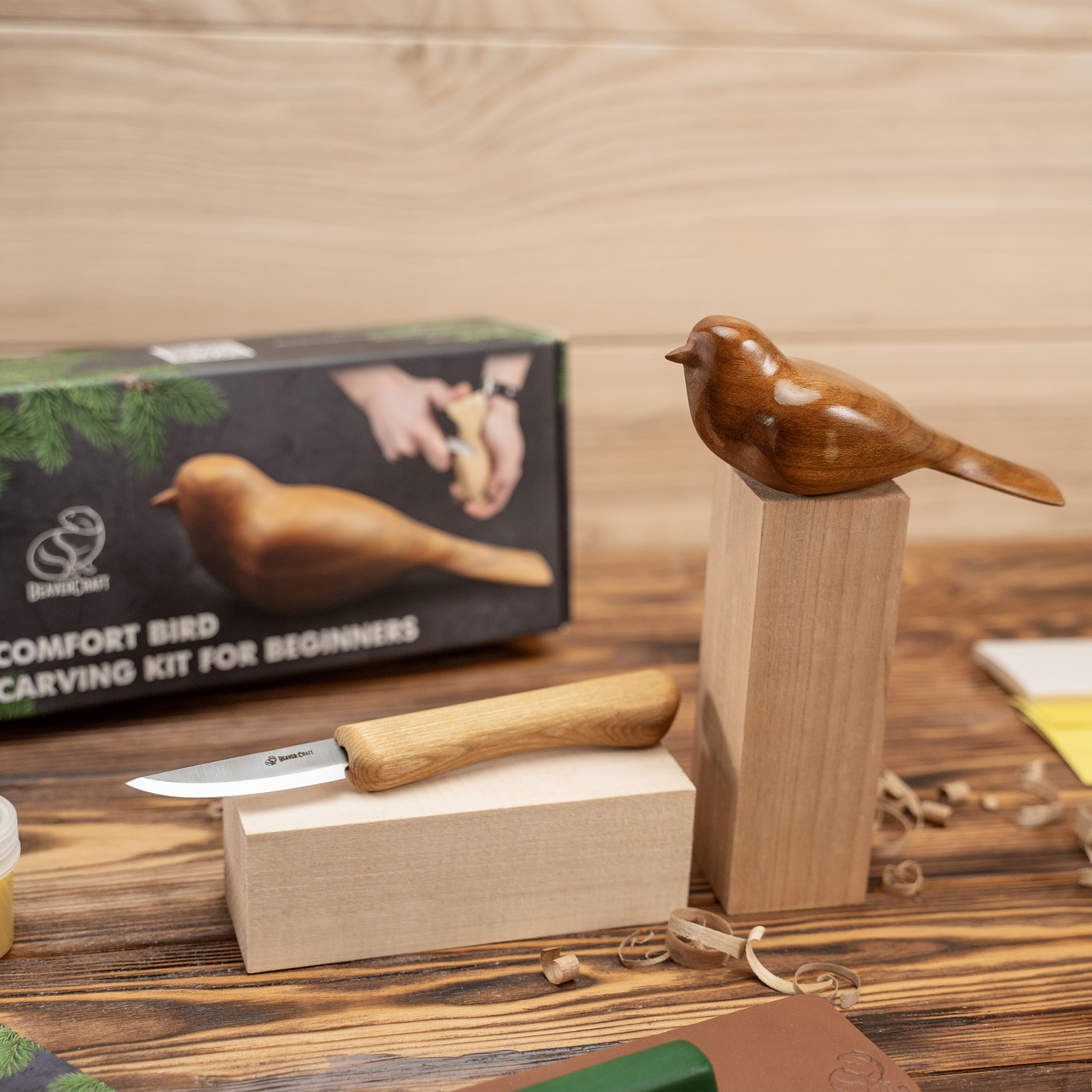 Набір для різьблення по дереву BeaverCraft DIY01 — це повний стартовий комплект для новачків, який дозволяє вирізати дерев’яну фігурку пташки навіть без попереднього досвіду. Підходить для дорослих, підлітків і всіх, хто хоче спробувати творче хобі та навчитися працювати з деревом.