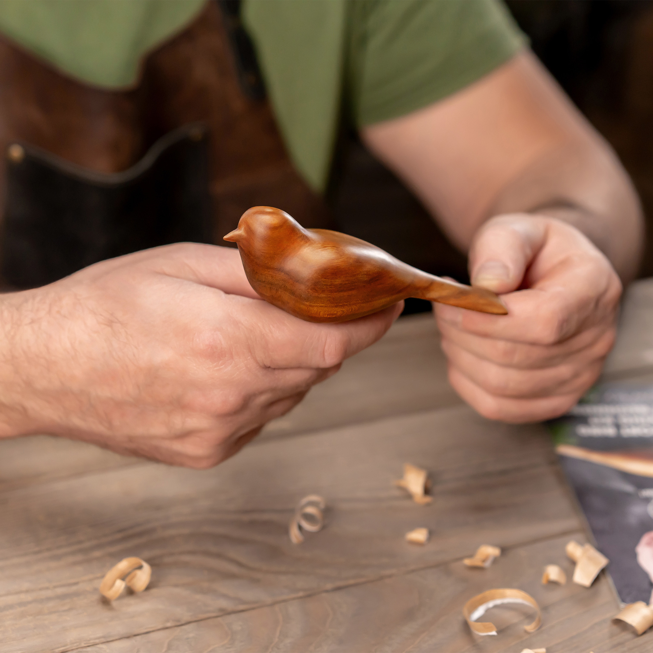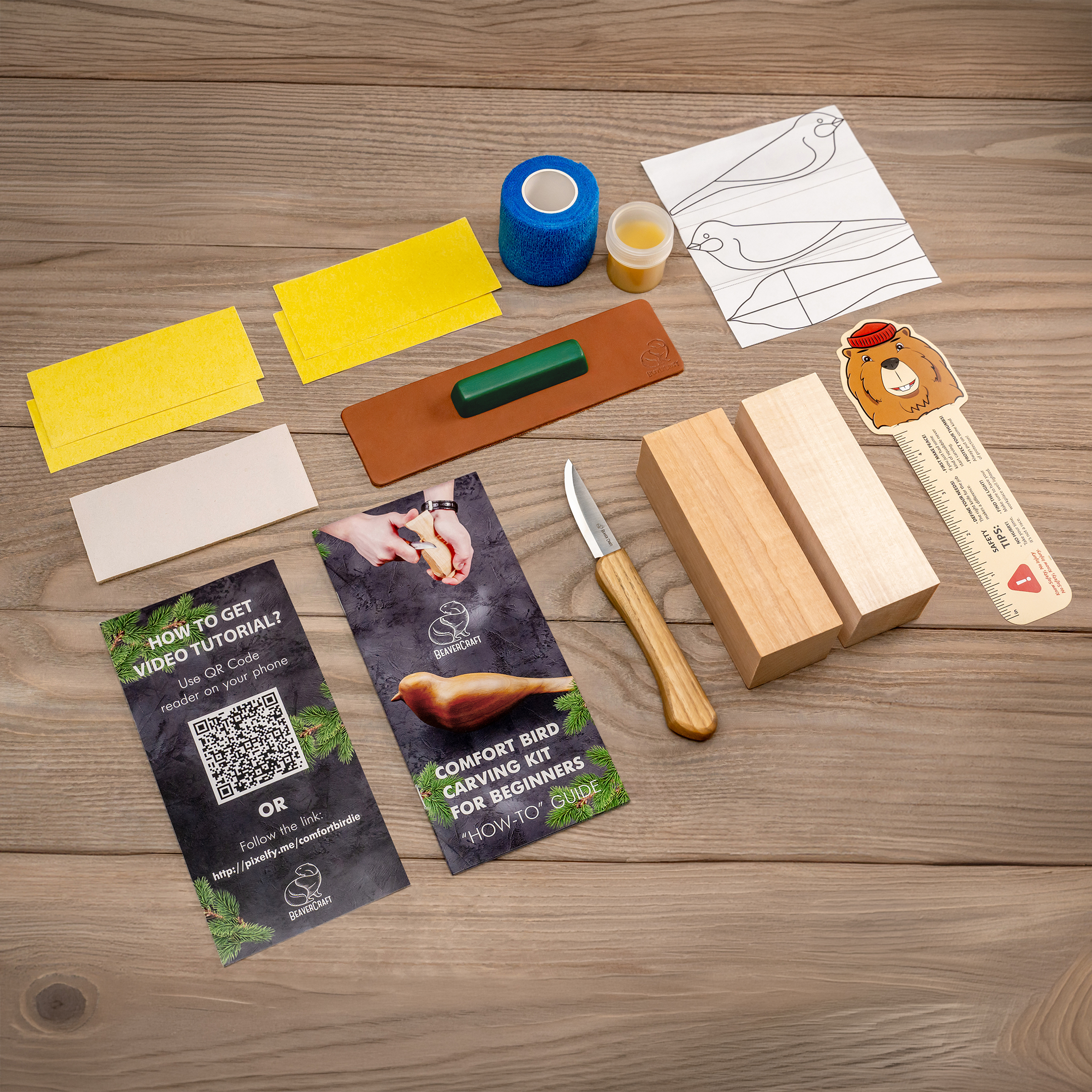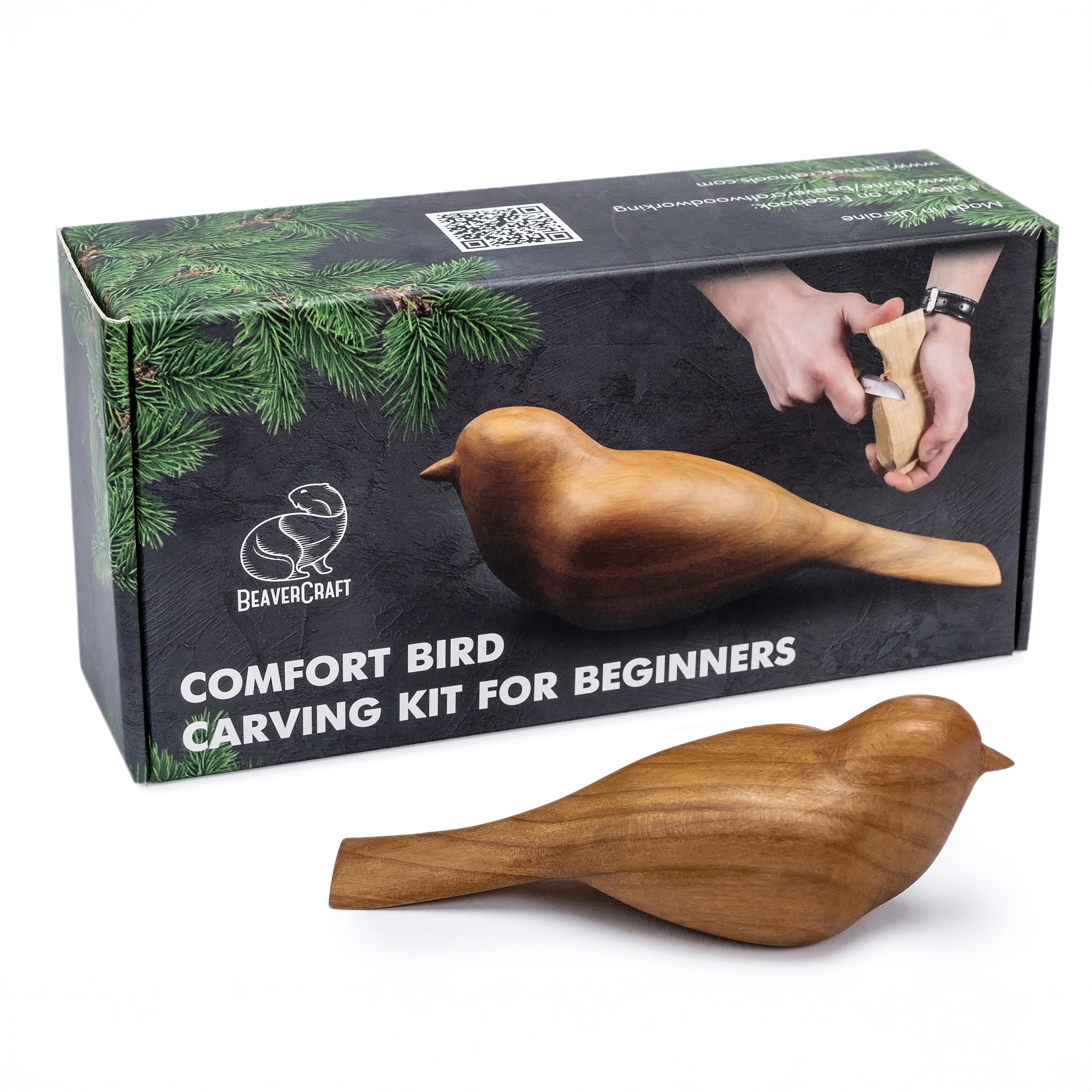 Покроковий буклет і відеоурок проведуть вас від першого зрізу до готової фігурки — навіть якщо ви ніколи раніше не тримали різьбярський ніж у руках.