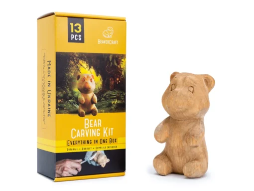 Цей цікавий і кумедний набір категорії “зроби сам” може бути саме тим, що ви шукали, аби покращити свій рівень у різьбі по дереву. Набір для вирізання дрібної скульптури по дереву “Ведмедик” містить усе, що вам потрібно, щоб спробувати себе у різьбярському ремеслі. Він розроблений спеціально для початківців, аматорів і ентузіастів DIY, щоб допомогти вам створити гарний і пам’ятний сувенір своїми руками.