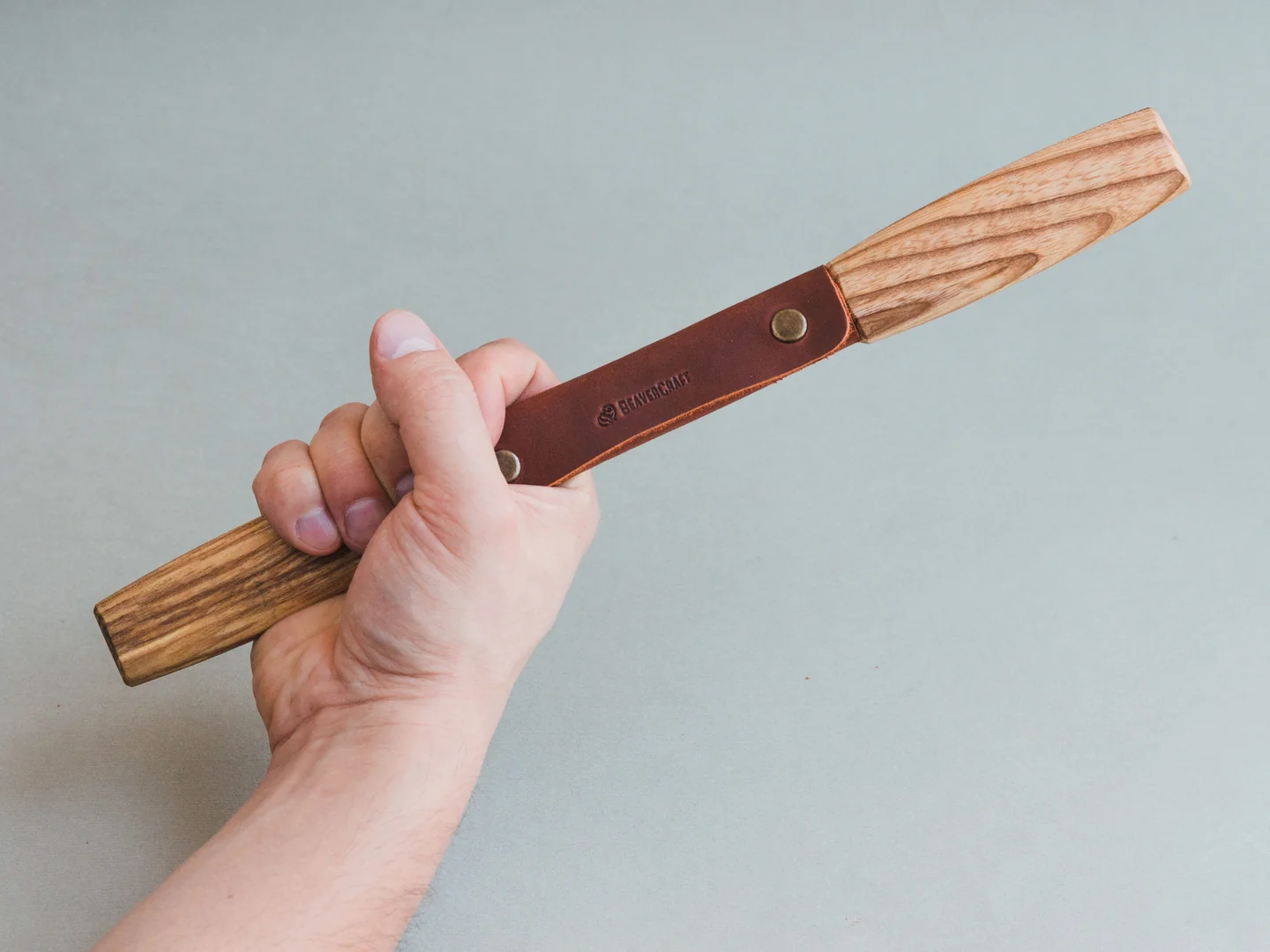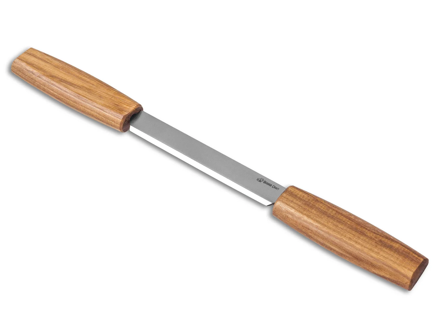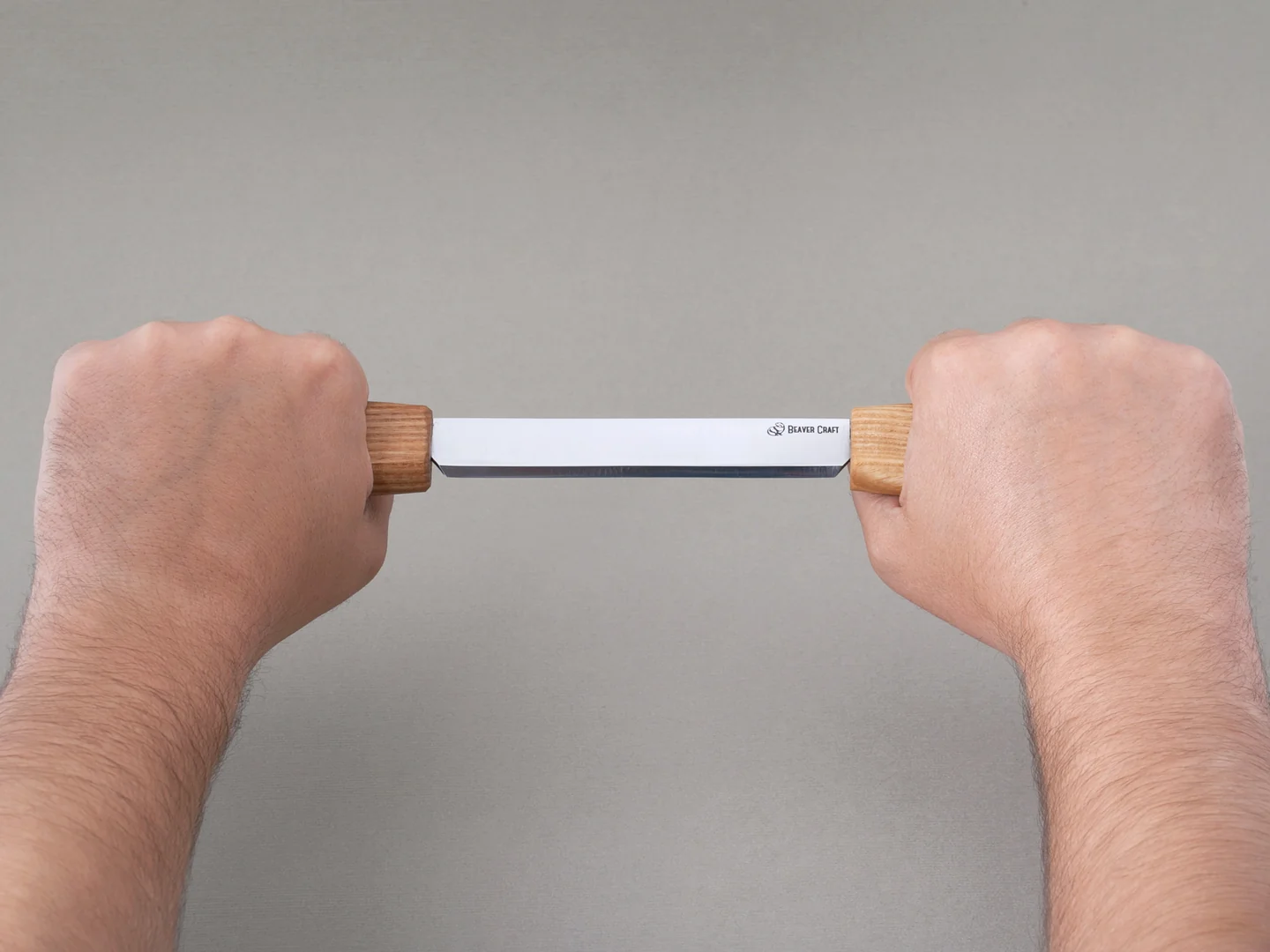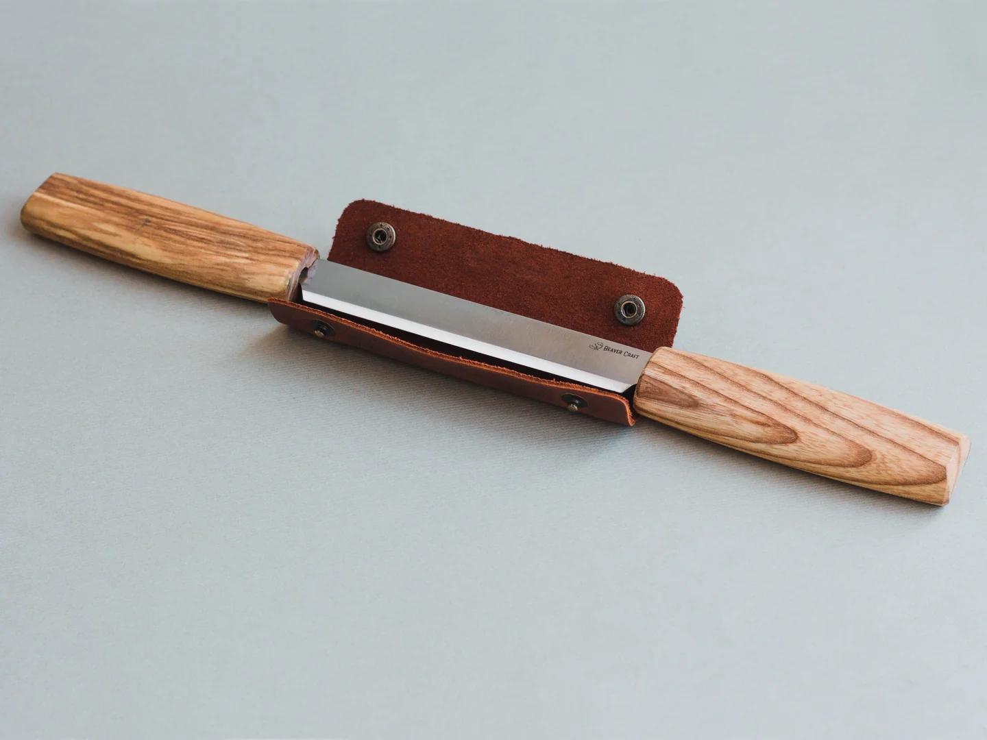 Лезо скобеля виготовлено з міцної та якісної загартованої високовуглецевої сталі, заточене та доведене. Інструмент має дві ручки з протилежних кінців ріжучої частини, як і в більшості інструментів подібного типу. Ручки виготовлені з ясена, вкриті натуральною лляною олією.