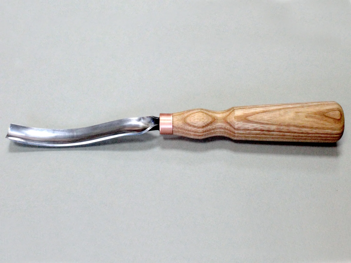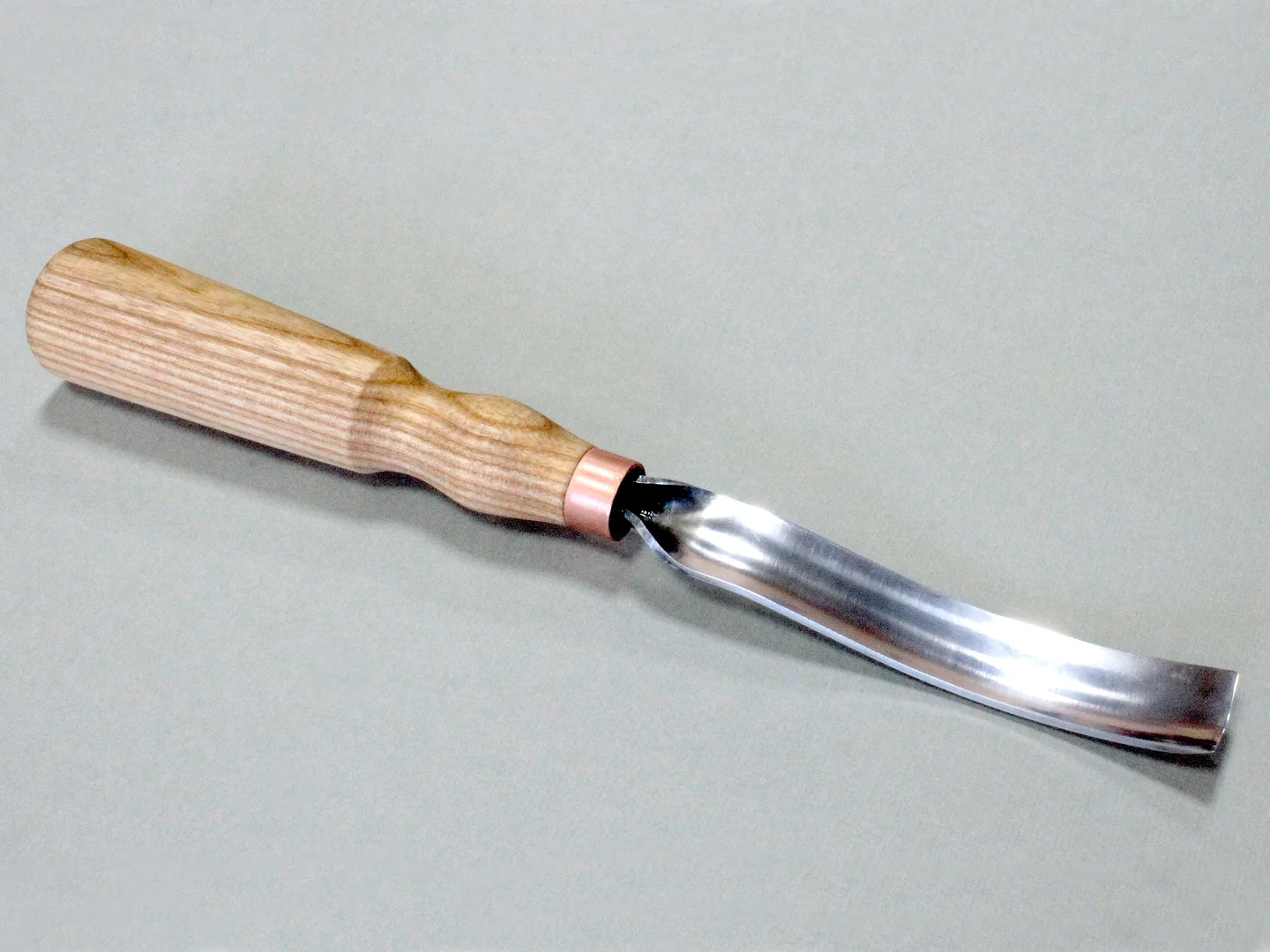 Стамеска має довгу вигнуту форму ріжучої частини, призначена для вирізання різних заглиблень при виконанні широкого спектру робіт — вирізанні ложок, мисок та багатьох інших виробів з дерева. Вона також також підходить для вирізання орнаментів та скульптурних робіт для вибирання деревини з округлих елементів.