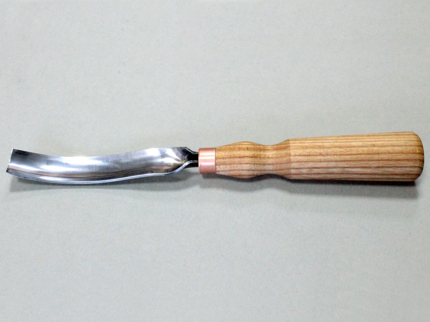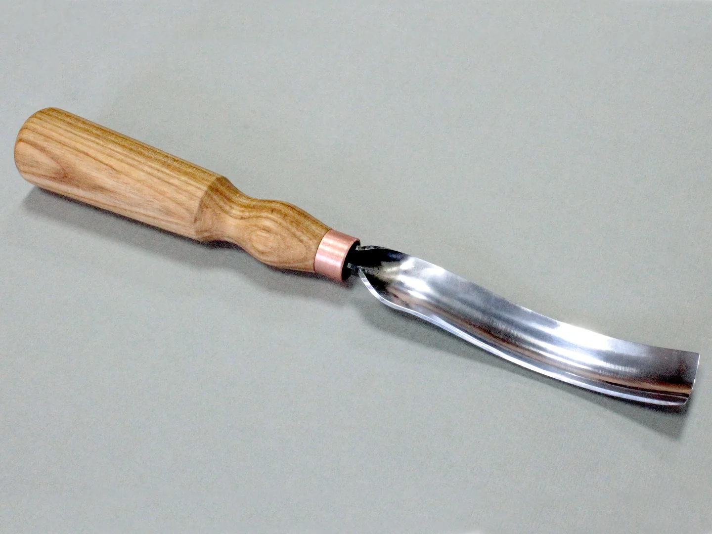 Стамеска має довгу вигнуту форму ріжучої частини, призначена для вирізання різних заглиблень при виконанні широкого спектру робіт — вирізанні ложок, мисок та багатьох інших виробів з дерева. Вона також також підходить для вирізання орнаментів та скульптурних робіт для вибирання деревини з округлих елементів.