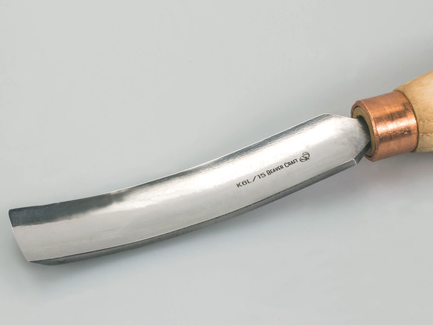 Ріжуча частина клюкарзи BeaverCraft K6L/15 виготовлена якісної високовуглецевої ресорної сталі, що добре тримає заточку та легко правиться. Ці стамески не призначені для токарних робіт, вони підходять лише для ручної різьби по дереву без використання ударної техніки різьби. При використанні киянок та іншого ударного інструмента стамеска може пошкодитися.