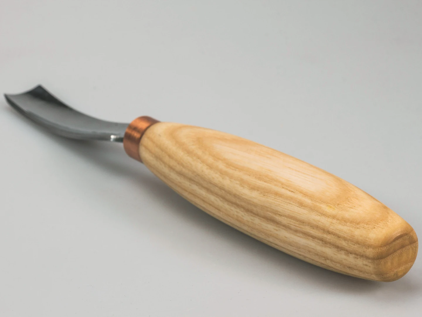 Компактний розмір та зручна форма ручки, що не має гострих граней, дозволяє працювати без втоми довгий час, вона виготовлена з ясена та просочена лляною олією, обладнана мідним кільцем, яке зміцнює конструкцію ручки.