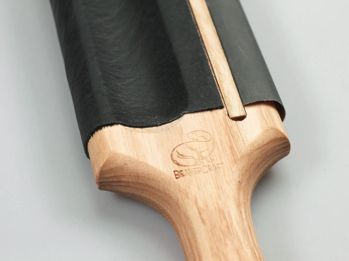 Дошка для правки BeaverCraft LS5 – це універсальне застосування, яке має дві робочі поверхні: з одного боку фіксується змінна смуга дрібнозернистого наждачного паперу для грубої доводки, а з іншого боку – коров’ячий чепрак, на який слід наносити полірувальну пасту, ця сторона використовується для фінішної доводки.