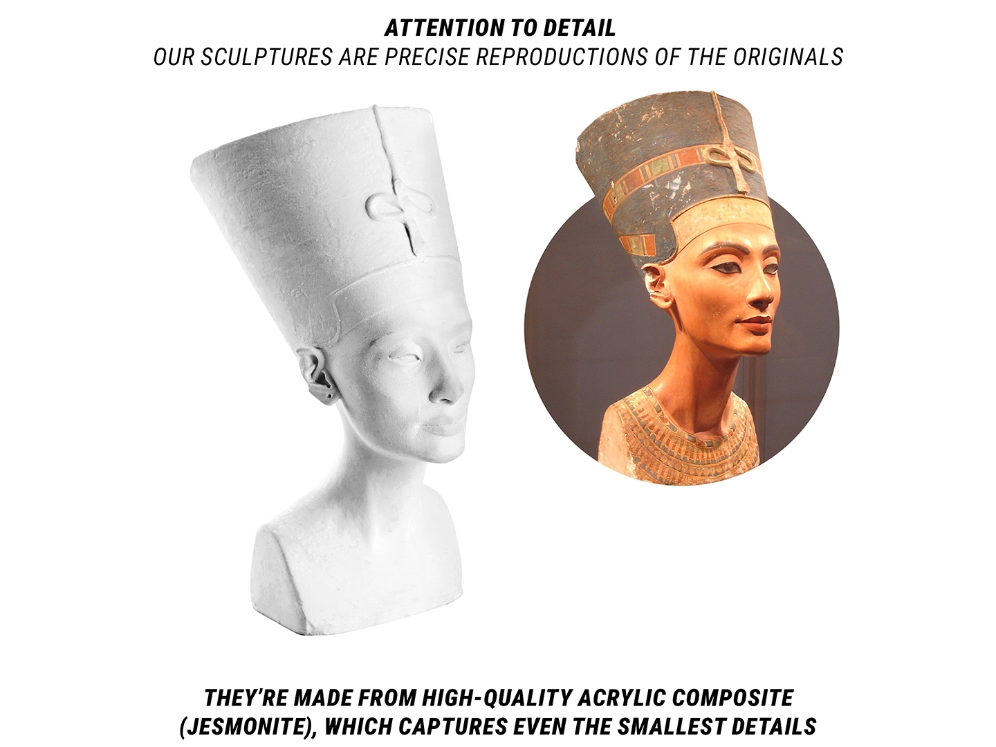 Готова скульптура Нефертіті з міцного полімерного композиту — унікальна прикраса або предмет колекції.