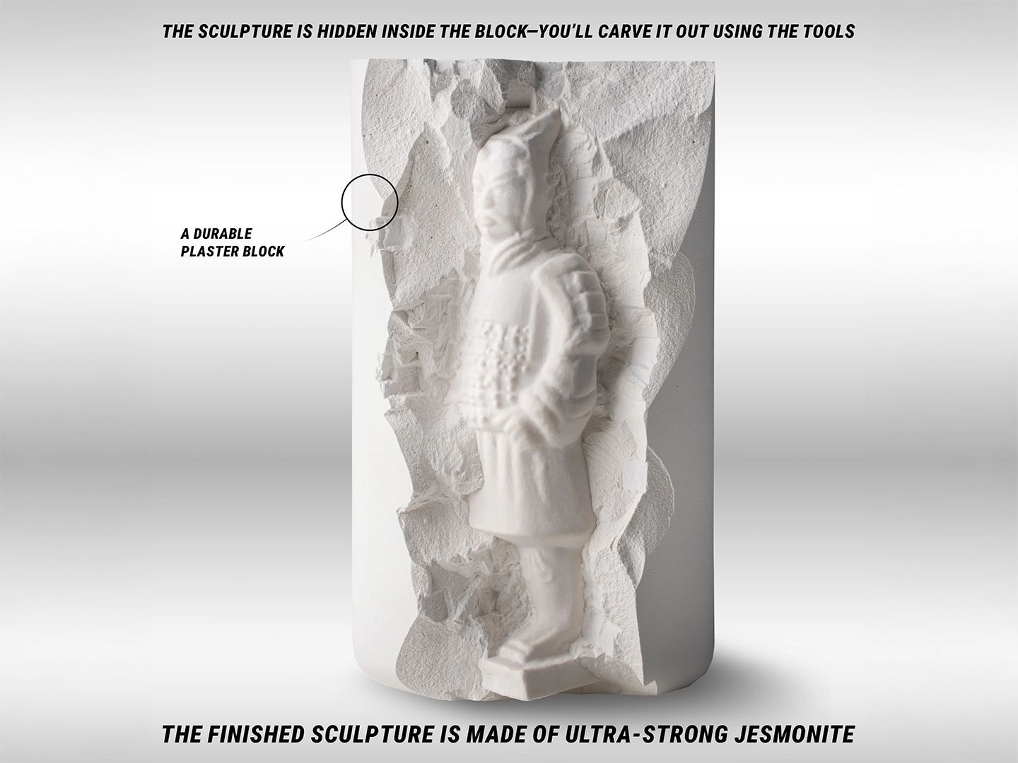Усередині суцільного гіпсового блоку захована деталізована фігурка з полімерного композиту. Ваше завдання — акуратно відколоти гіпс і вивільнити воїна.