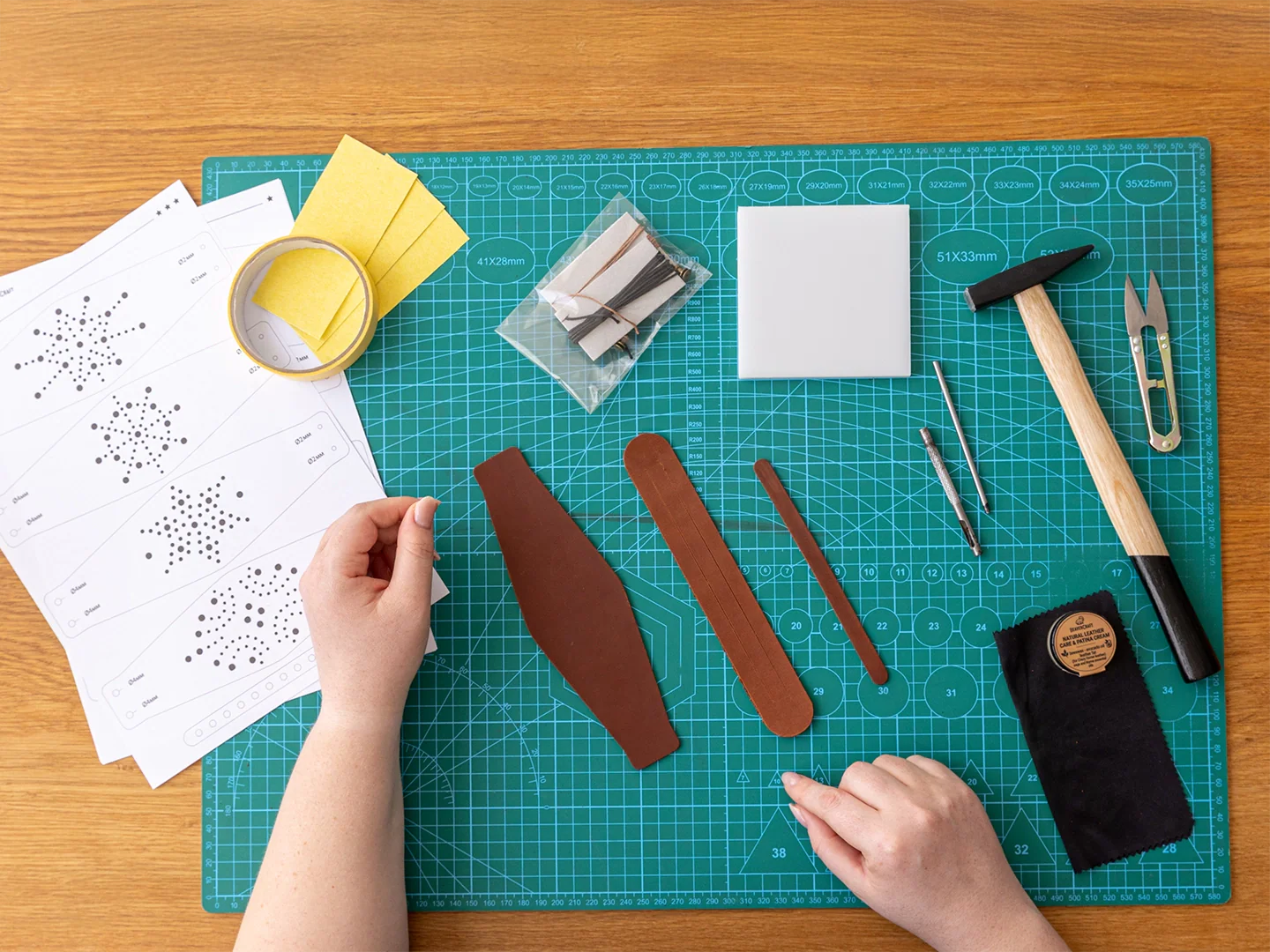 Користуватись пробійниками, зав’язувати ковзний вузол, плести, обробляти шкіру. 10+ шаблонів для персоналізації.