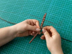 Матеріали: 3 шматки шкіри (готові вирізи) · шкіряні шнури · кнопки (2 шт.) · дерев’яні елементи для декору · патинова крем-фарба · шаблони для декору · інструкція