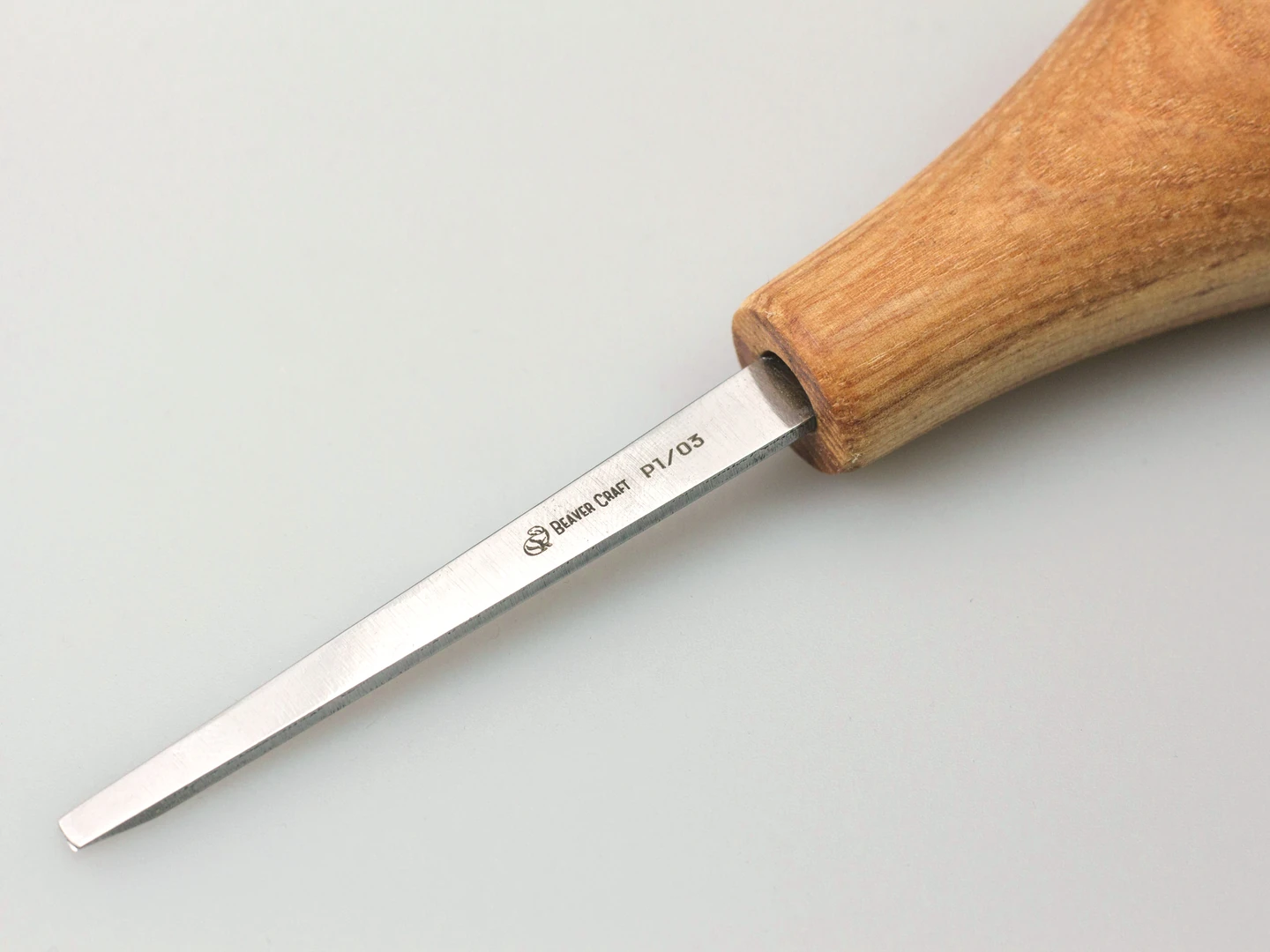 Штихелі для різьби по дереву BeaverCraft призначені для вирізання плоских заглиблень, вирізання рельєфів та контурів, зачистки фону та багато іншого. Вузька ріжуча частина цієї стамески має ширину 3 мм. вона дає можливість зрізати деревину надтонкими шарами, а ручка спеціальної форми дасть можливість робити це з великою точністю. Використовуються тільки для точної ручної роботи без використання ударної техніки різьби.