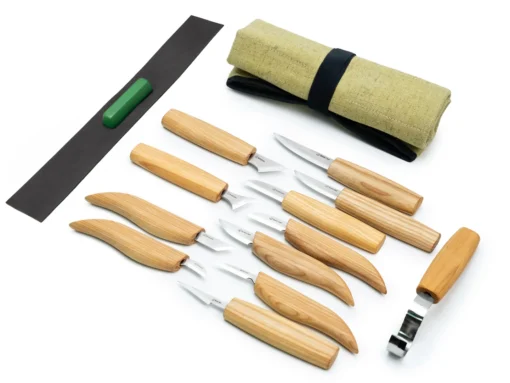 Це чудовий великий набір інструментів для різьби по дереву підійде на всі випадки життя, він складається з дванадцяти ножів, загорнутих в спеціальний чохол-скатку. Цей набір інструментів є одним із найбільш повних наборів інструментів BeaverCraft і включає в себе майже всі ножі та ложкоріз із діаметром заокруглення 30 мм.
