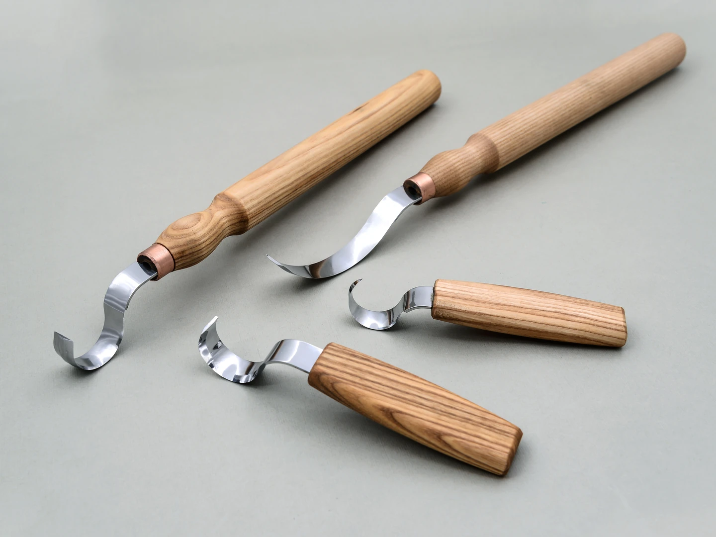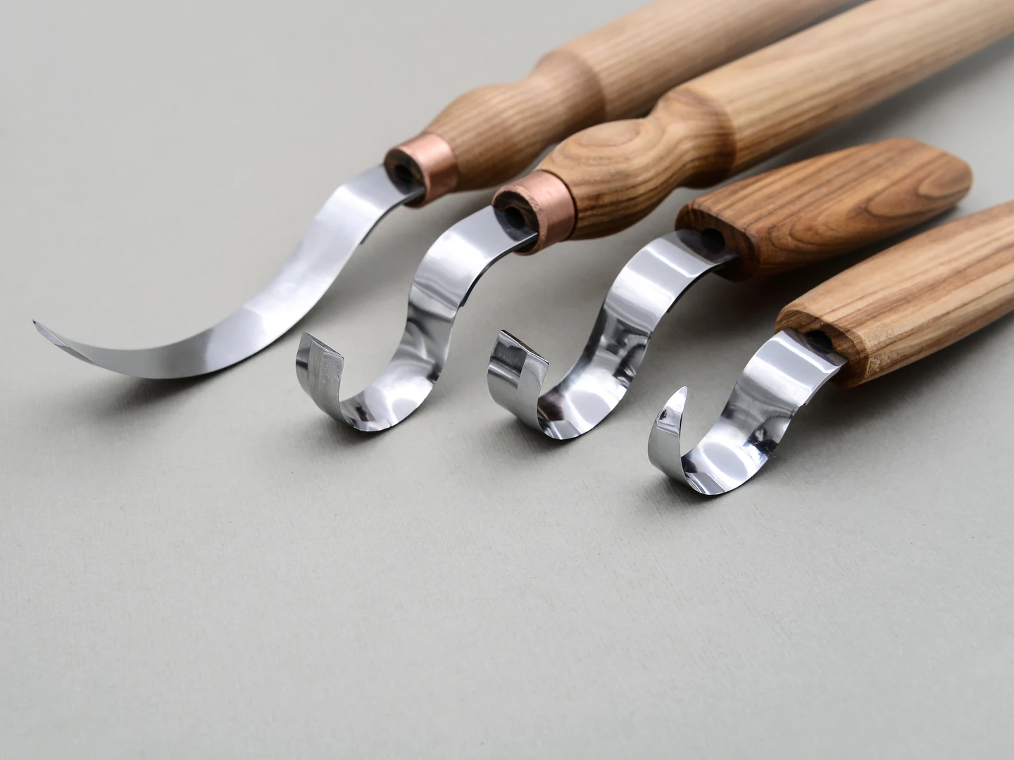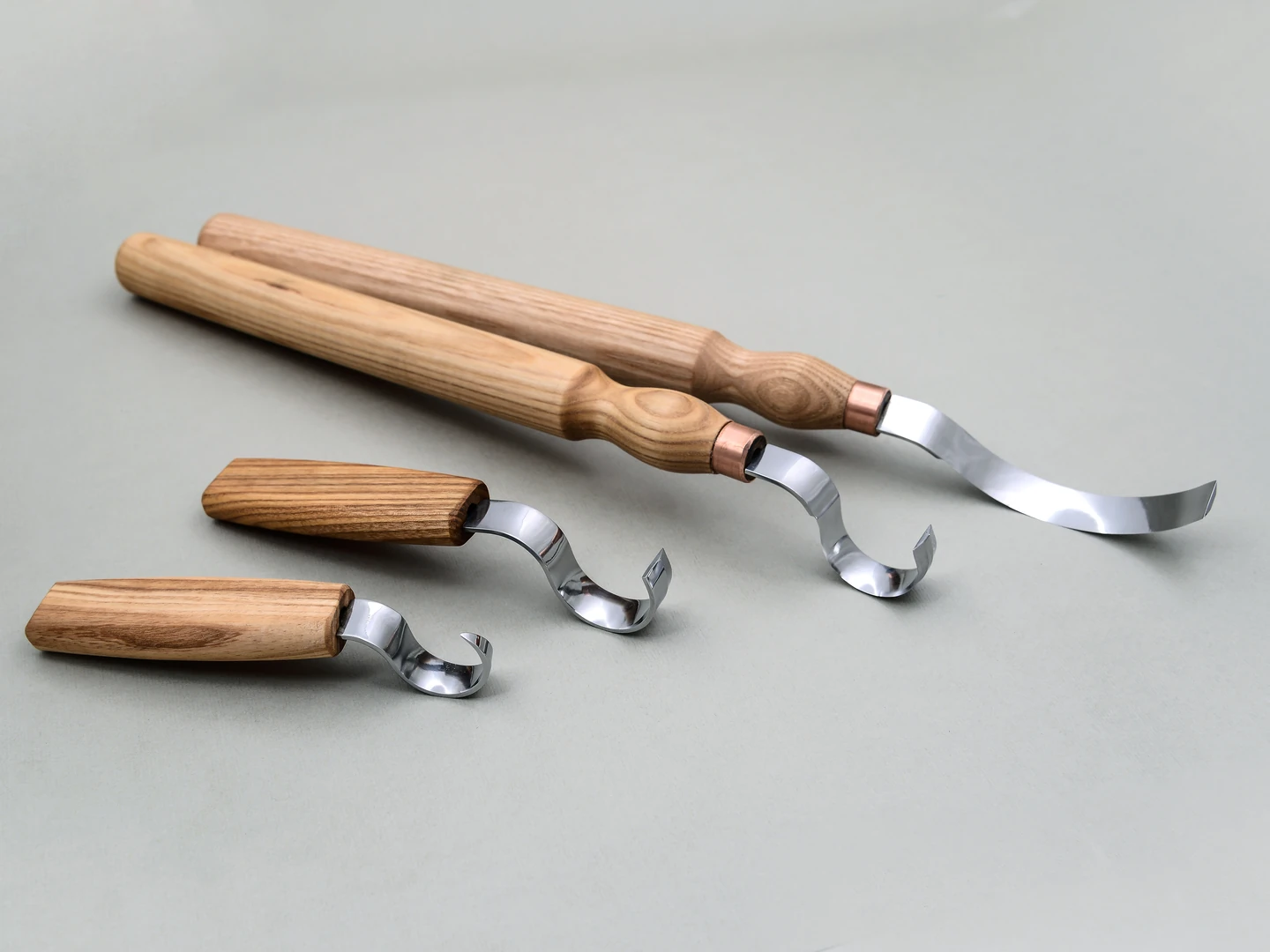 Цей набір із 4 ножів-ложкорізів призначений для того, щоб дати можливість майстру робити ложки, чаші, кукси, або створювати такі вироби, що потребують вирізання круглих заглиблень будь-якого розміру.