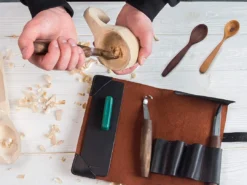 C4 (горіх) · Ложкоріз (горіх) · стамеска (горіх) · Шкіряний ремінь · Полірувальна паста · Шкіряний чохол