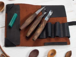 BeaverCraft S14X — це преміальний набір для різьблення ложок із трьох інструментів із рукоятками з горіха в шкіряному чохлі: для тих, хто різьбить серйозно і хоче інструменти відповідного рівня.