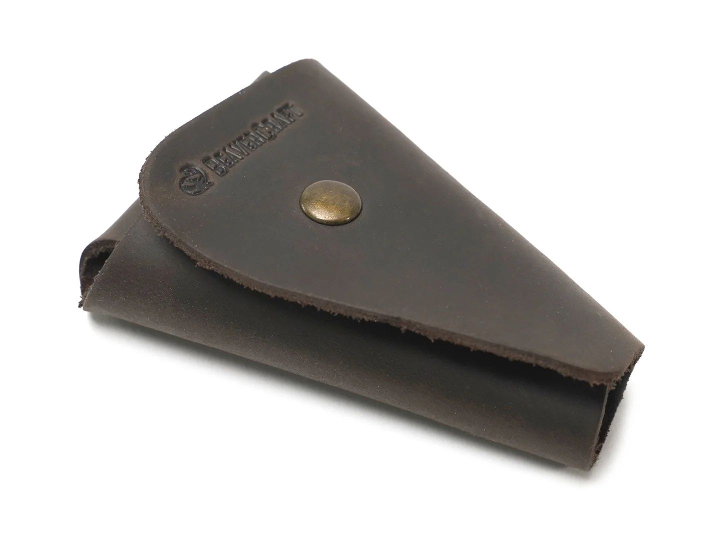 Чохол виготовлено із натуральної коров’ячої шкіри, яка є оптимальним матеріалом для такого роду аксесуарів, бо вона є досить цупкою, проте це не заважає їй бути міцним та довговічним матеріалом. За розміром він ідеально підходить для ложкоріза BeaverCraft SK1, SK2 та SK5 – гакоподібних ножів з дубовою ручкою.