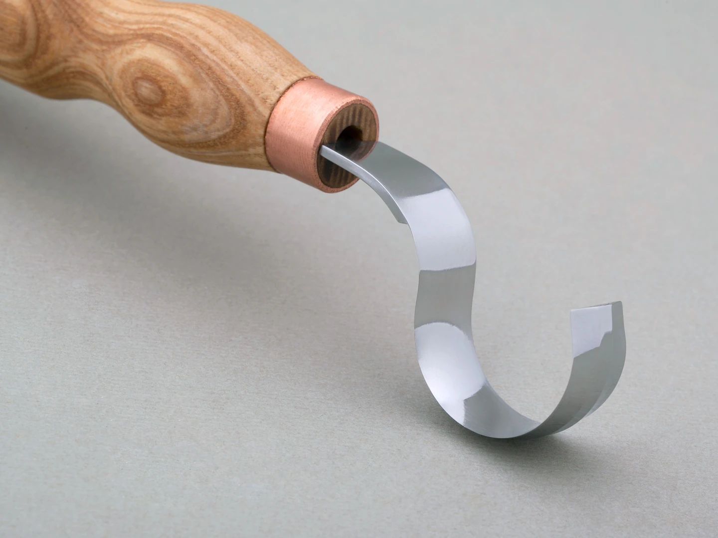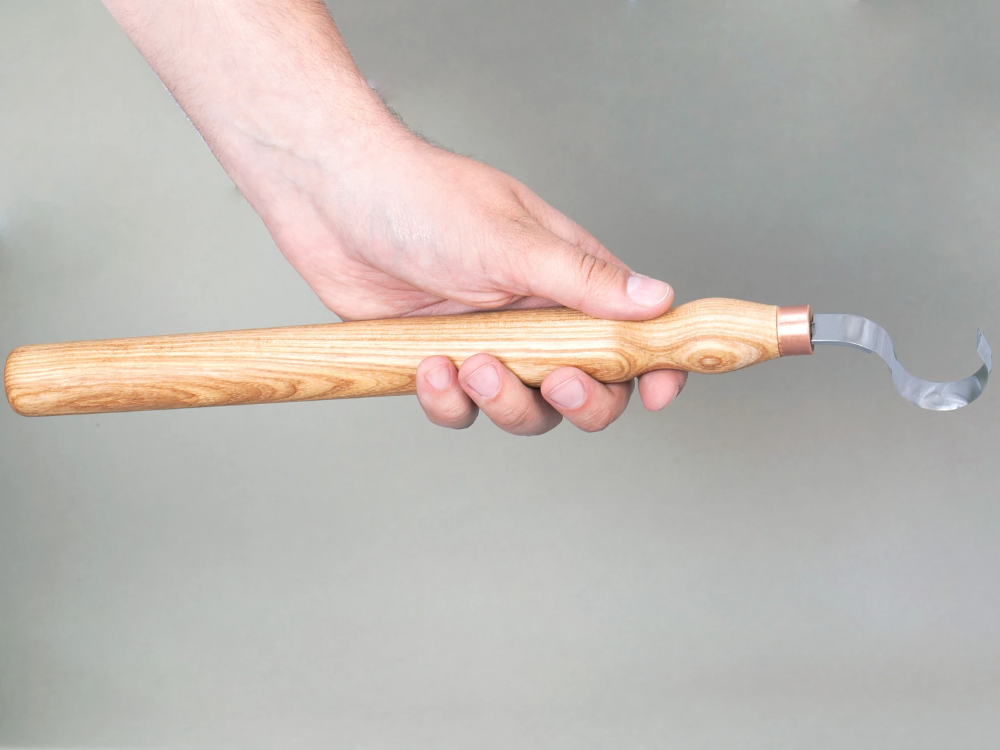 Ложкоріз SK2Long – це варіант ложкоріза SK2, але з довгою ручкою та з двостороннім заточуванням. Це гакоподібний ніж для вирізання ложок, тарілок, кукс та круглих глибоких заглиблень в деревині при виготовленні інших виробів. Діаметр робочої ріжучої частини ложкорізу складає 30 мм. За допомогою такого гакоподібного ножа можна працювати із м’якими та твердими породами деревини. Подовжена ручка інструменту дозволяє довгий час працювати руками не втомлюючись.