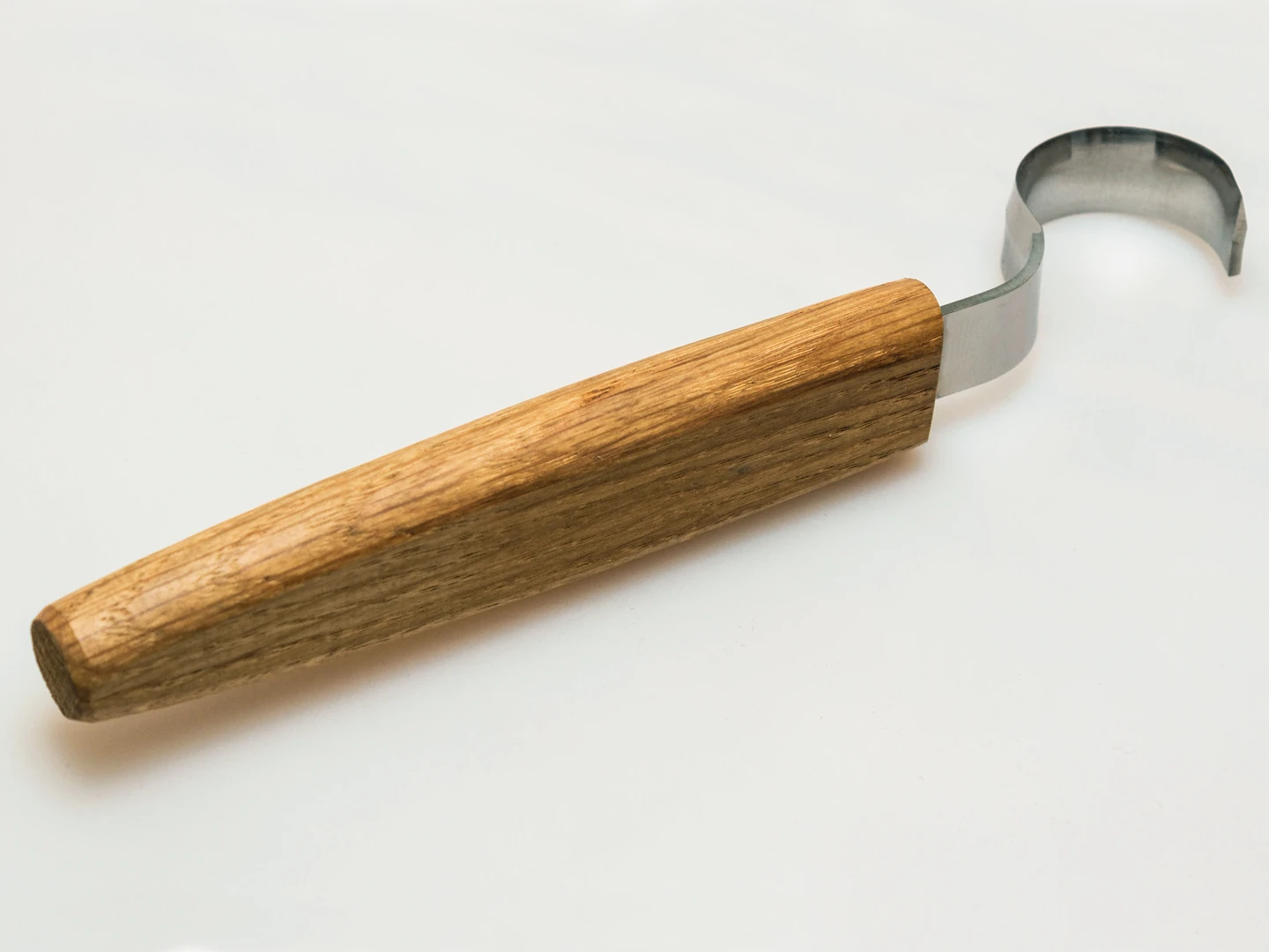 Ложкоріз – це гакоподібний ніж для вирізання ложок, тарілок, кукс та круглих глибоких заглиблень в деревині при виготовленні інших виробів. Діаметр робочої ріжучої частини ложкоріза складає 30 мм. тому він ідеально підходить для невеликих та середніх виробів. За допомогою такого гакоподібного ножа можна працювати із м’якими та твердими породами дерева. Ложкоріз є надзвичайно важливим інструментом для тих майстрів, що займаються вирізанням дерев’яних ложок.