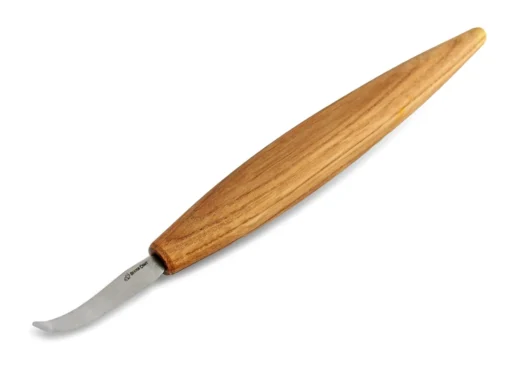 Ложкоріз SK4 – це компактний, але дуже корисний інструмент для вирізання заглиблень в деревині середнього та великого діаметру зі зручною ручкою. Це гакоподібний ніж для вибирання деревини при виготовленні великих виробів, добре відомий серед англомовних майстрів як “Open Curve” (відкритий вигин) та чудово підходить для вирізання піалок, мисок, кукс та чаш, фінішної виборки та зачистки різноманітних радіусних елементів. Ріжуча частина ложкоріза має пелюсткоподібну форму з двостороннім скосом від центру до країв. Заточування одностороннє.