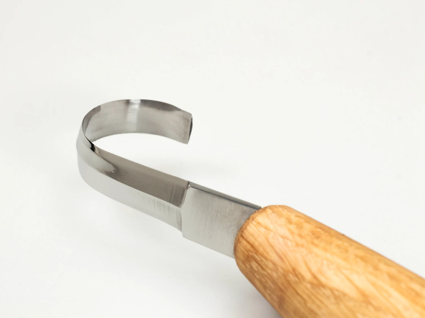Цей ложкоріз має заточене з обох боків лезо, що дає більше можливостей для маневрів при роботі й дозволяє однаково комфортно працювати ним незалежно від того хто ви – правша чи лівша. Виготовлене воно із високовуглецевої сталі, яка добре тримає заточку та легко правиться. Заточка бритвенно гостра, завдяки цьому різи виходять ідеально гладкими, а деревина зрізається легко, без докладання великих фізичних зусиль.